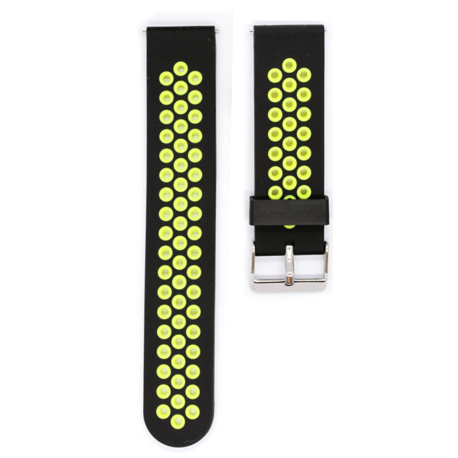 This black and yellow silicone wristband is skin-friendly and breathes well. The sporty look is sure to bring a new look to your watch. The bracelet has a quick-release fastening, which makes changing it a snap.
