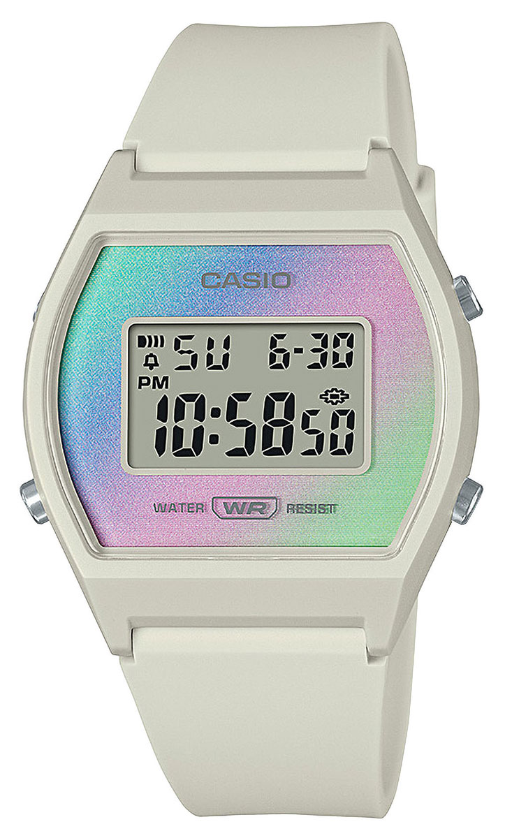 Casio Collection LW-205H-8AEF is one of the most iconic retro inspired watches that will never go out of style. A trendy accessory which is easy to style for any occasion because of its timeless design. This digital watch is equipped with the iconic square design of Casio watches and features a LCD display. The classic look is topped with modern details, and a glittery bezel around the LCD dial perfect for anyone looking for a unique watch.