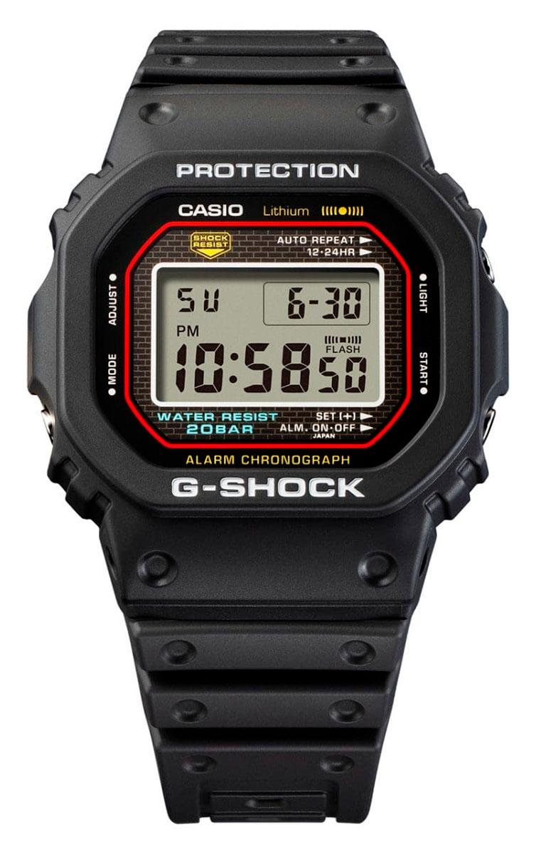 Casio G-Shock DW-5000R-1AER stays true to the origins of G-SHOCK. This updated model inherits the design concepts of the first G-SHOCK, while incorporating modern Casio technologies that provide today's advanced functions. The Casio G-Shock DW-5000R-1AER is a stylish shock-resistant wristwatch with a body width of 42.3 mm and a thickness of 13.1 mm. The whole weight is only 76 grams. Its black strap is made of bio-based resin, with a length of 145 to 205 mm. Mineral glass protects the digital dial, which has features such as timekeeping, stopwatch, multi-alarm, equinox signal, automatic calendar and 12/24h, date and day of the week displays. Casio G-Shock DW-5000R-1AER belongs to the water resistance class 200m / 20atm, so it is suitable for swimming and scuba diving.