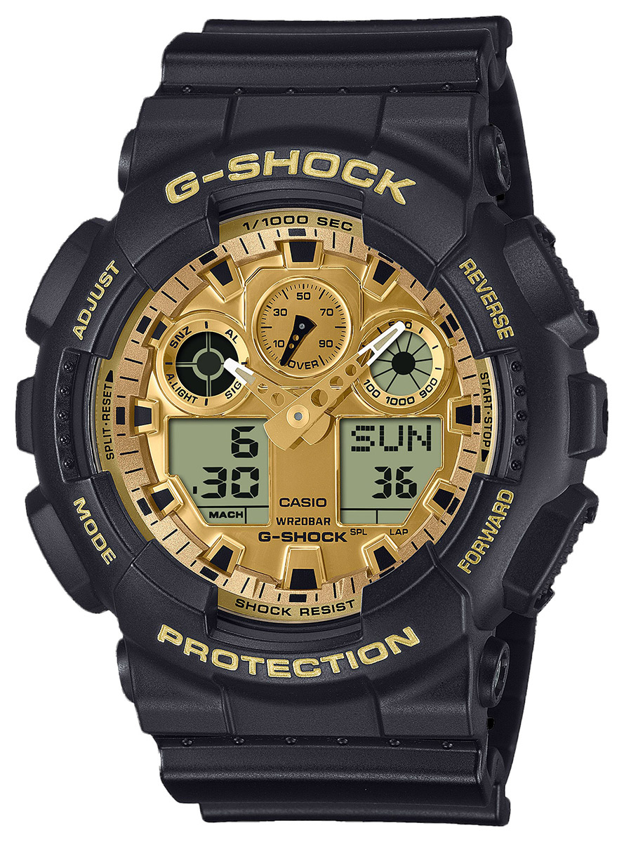 Casio G-Shock GA-100GGB-1A9 makes a strong and confident impression with a striking black and gold combination that combines G-SHOCK's iconic durability with striking style.