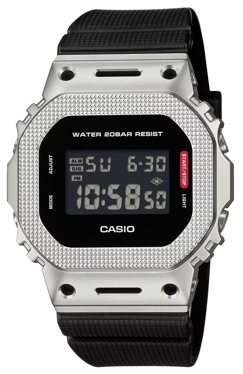 Casio G-SHOCK GM-5600M-1ER combines sleek design, impressive practicality and the uncompromising durability that is typical of G-SHOCK watches. The modern, monochrome, industrial-inspired look gives the iconic 5600 model a calm yet powerful look. The watch's stainless steel metal bezel is finished with a distinctive textured pattern that highlights both visual impact and durability. A small red accent on the operation button marking refers to the G-SHOCK tradition and its absolute commitment to durability - each design element is made to serve its purpose clearly and effectively.