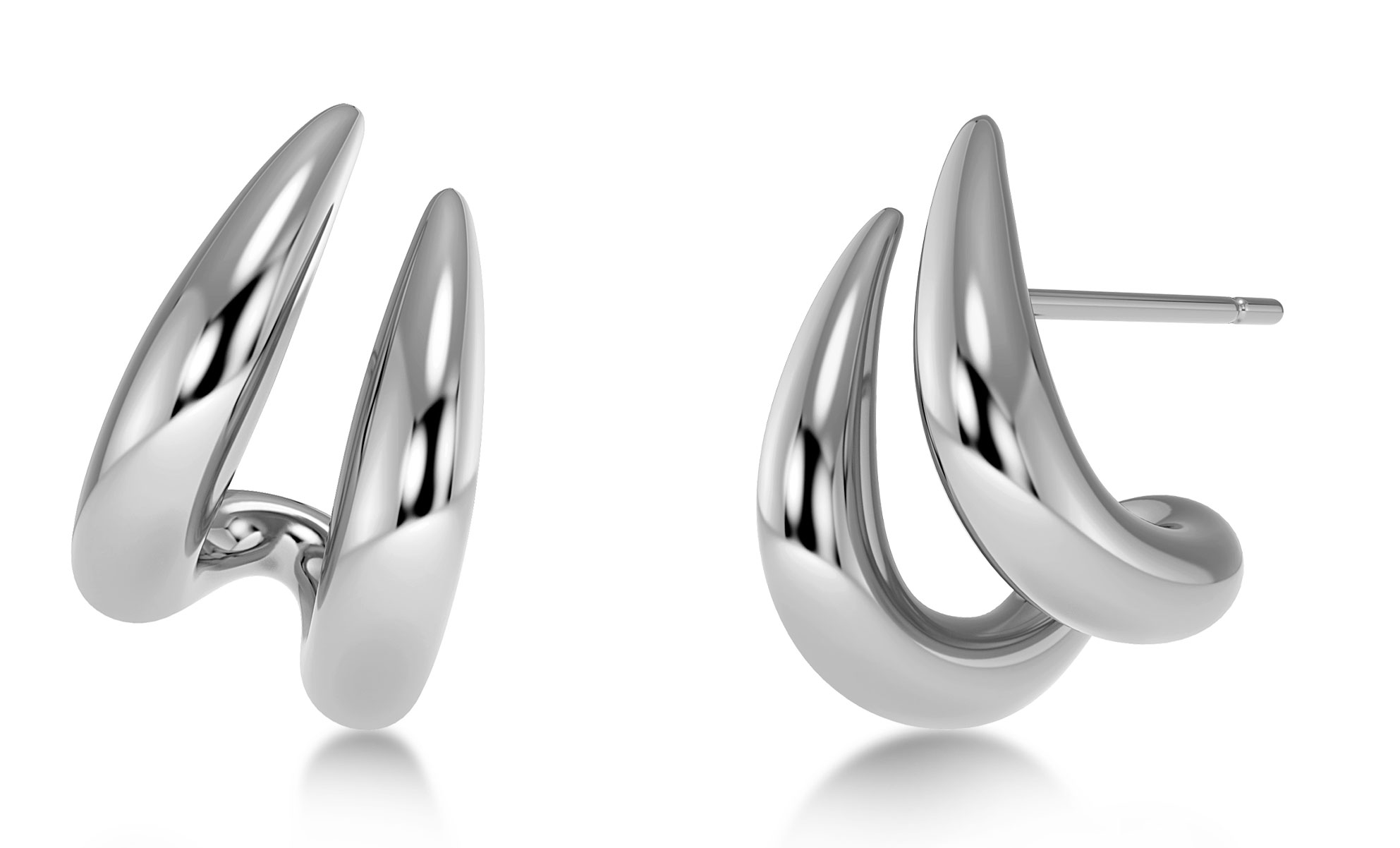 Edblad Spire Hoops L 129731 are trendy claw-shaped earrings that go with any outfit. When worn on the ear, these earrings give the impression of two earrings instead of one. Made of shiny stainless steel, they are nickel-safe and waterproof. Stud fastening. Size: 12 x 18 mm.