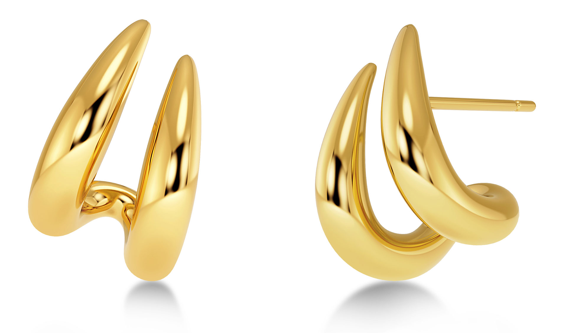 Edblad Spire Hoops L 129730 are trendy claw-shaped earrings that go with any outfit. When worn on the ear, these earrings give the impression of two earrings instead of one. Made of shiny stainless steel with 14k gold plating, they are nickel-safe and waterproof. Stud fastening. Size: 12 x 18 mm.