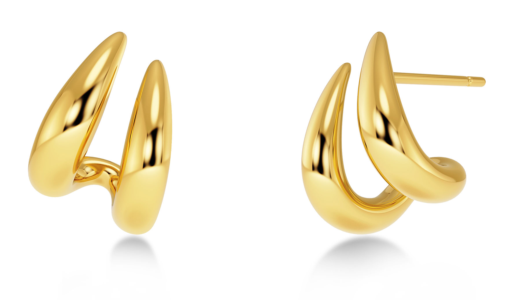 Edblad Spire Hoops S 129728 are trendy claw-shaped earrings that go with any outfit. When worn on the ear, these earrings give the impression of two earrings instead of one. Made of shiny stainless steel with 14k gold plating, they are nickel-safe and waterproof. Stud fastening. Size: 10 x 14 mm.