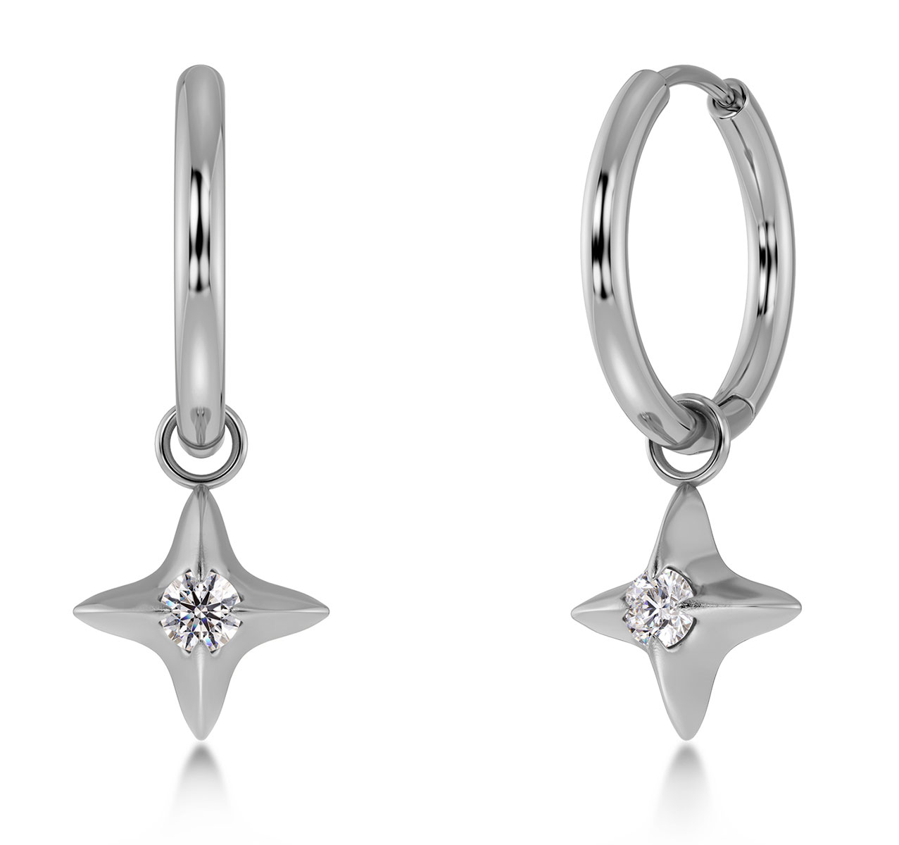 Edblad Stellar Hoops 129737 earrings feature a beautiful star with a clear zirconia inside for added sparkle. Made of shiny stainless steel, the earrings are a great addition to any outfit. Nickel-free and waterproof. Size: 10 x 10 mm and 13 mm in diameter. Total length 23 mm.