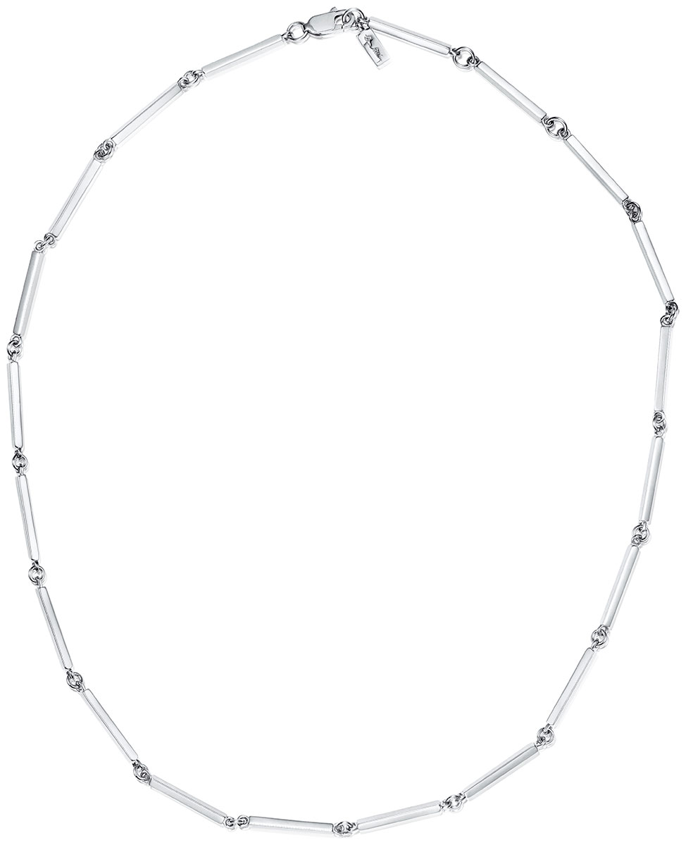 Efva Attling Classy Necklace 10-100-02271-4045 is a recycled 925 sterling silver necklace with interlocking rods. The necklace is inspired by the works of Swedish blacksmith Wiwen Nilsson. The rods are 16 mm long and the necklace has 20 rods linked together. The Efva Attling jewellery comes in its original box.