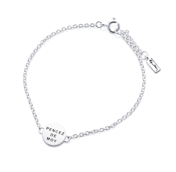 ‌Efva Attling Mini Pencez De Moy bracelet 14-100-00568/1719 with a powerful message "Think of me" written in 14th century french. The diameter of the pendant is 11 mm, and the chain is adjustable in length between 17-19 cm. Efva Attling jewelry is delivered in its original packaging.