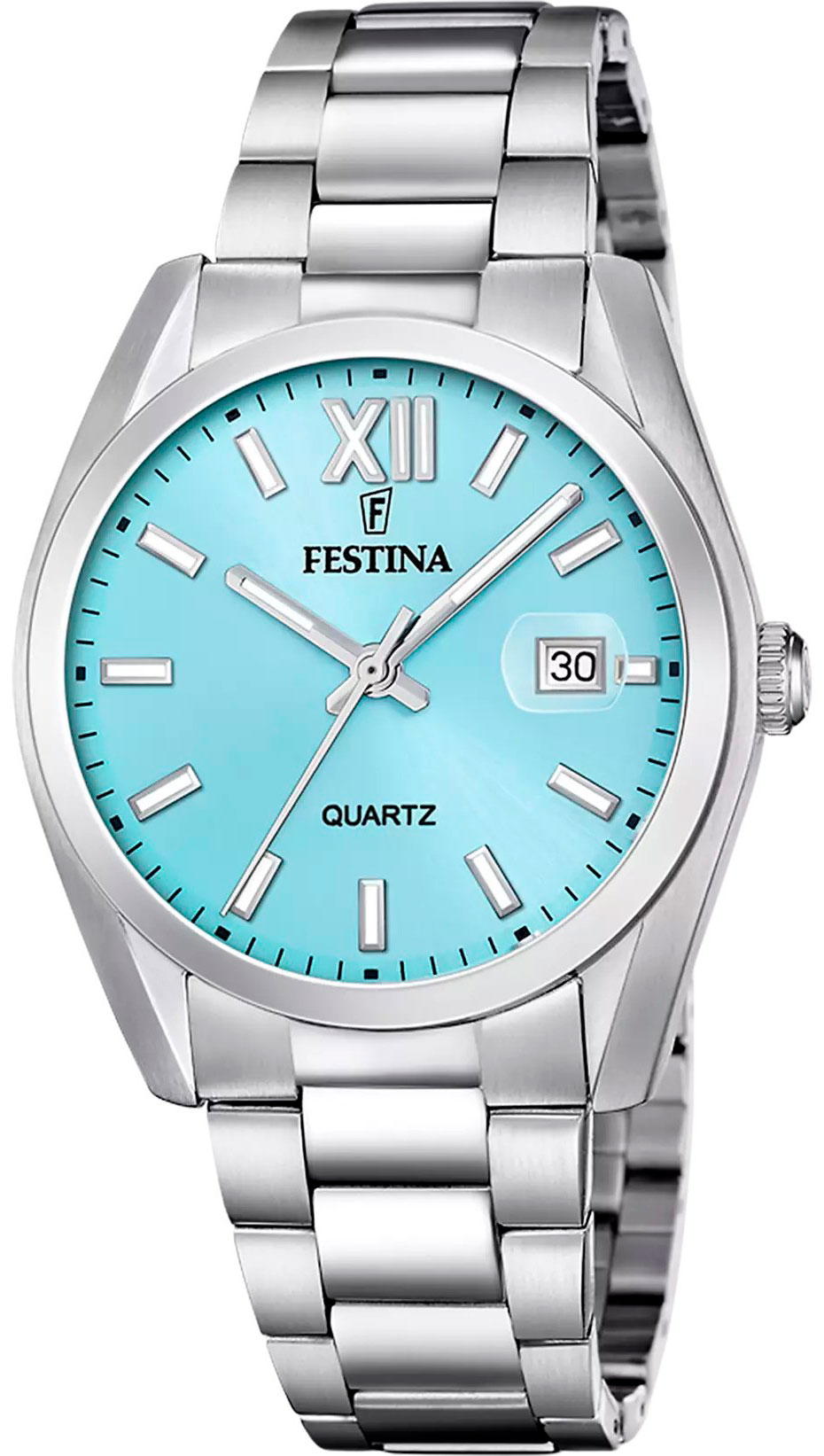 Festina Classic F20707/2 men's wristwatch is a stylish masterpiece that exudes the high-quality expertise of Swiss watchmaking. The watch case is made of stainless steel and is 40 mm wide and 9 mm thick. The total weight of the watch is 105 grams and it is equipped with a Miyota 2115 quartz movement with a running time of 3 years. Durable mineral glass protects the light blue dial, which has luminescent hands and indexes that help you see the dial in the dark. The date can be found at 3 o'clock, which is equipped with a small magnifying glass lens. The width of the steel bracelet from the attachment point is 21 mm. Festina Classic F20707/2 is water resistant to 50m / 5atm, meaning it is limitedly water resistant (swimming is not recommended).