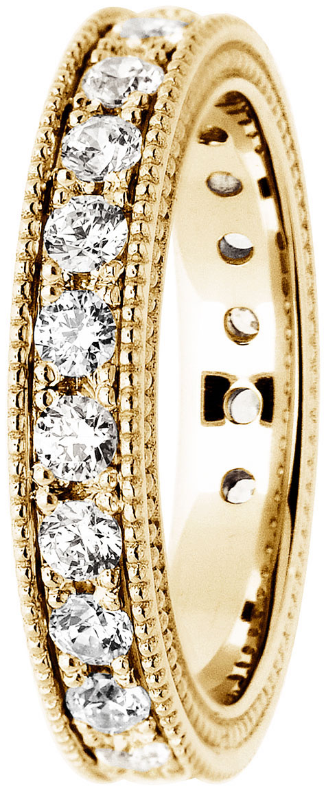The Alexia from Festive is a classic, eternity diamond ring that is perfect for both wedding and engagement rings. Designed by Marko Osala, it is adorned with 23 0.01ct clear Wesselton diamonds cut with a classic diamond cut. The vintage-inspired Alexia ring measures 4mm in width and is available in either 14 or 18 carat yellow gold (there are also white gold and rose gold versions of the same ring).