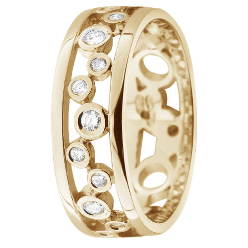 The personalised Festive Circular ring, is perfect for the person who wants a more unique design for their ring. The ring is set with eleven clear Wesselton diamonds, cut with a traditional diamond-cutting technique. The diamonds measure 8x0.01ct and 3x0.02ct and meet the high standards of the SI diamond clarity scale. The ring's poem measures 6mm in width and uses high quality yellow gold, with a choice of 14 or 18 karats. A silver-coloured white gold version of the same ring is also available.