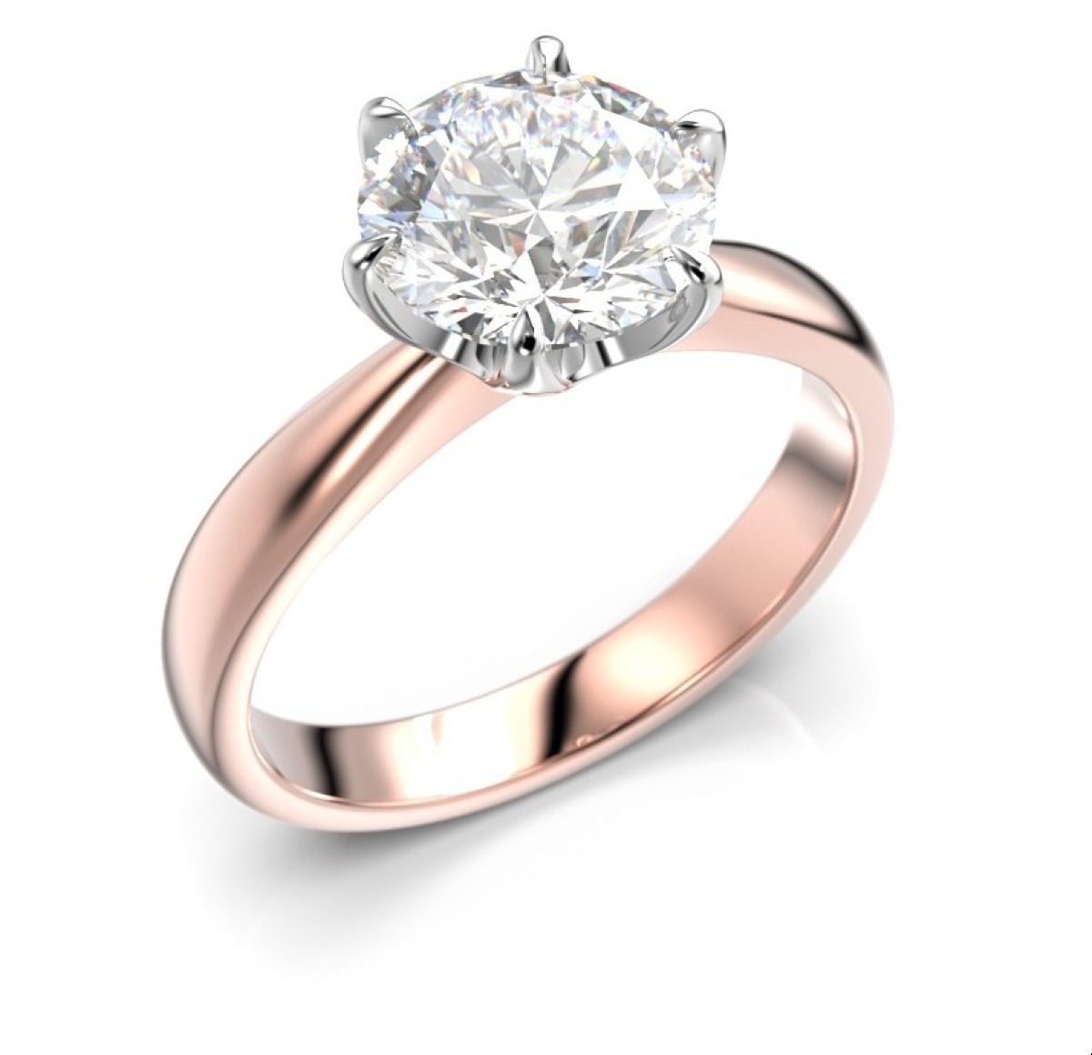 A solitaire diamond ring is one of the most classic and most sought after wedding and engagement ring types. Festive Classic 23 solitaire diamond ring rose and white gold 2,00ct 686-200-PV is made of 14 karat or 18 karat rose gold depending on your preferences, and is adorned with a 2,00 ct diamond. The prongs are made of white gold enhancing the clear look of the diamond. The shank tapers towards the stone finalizing the classic look of this solitaire ring.