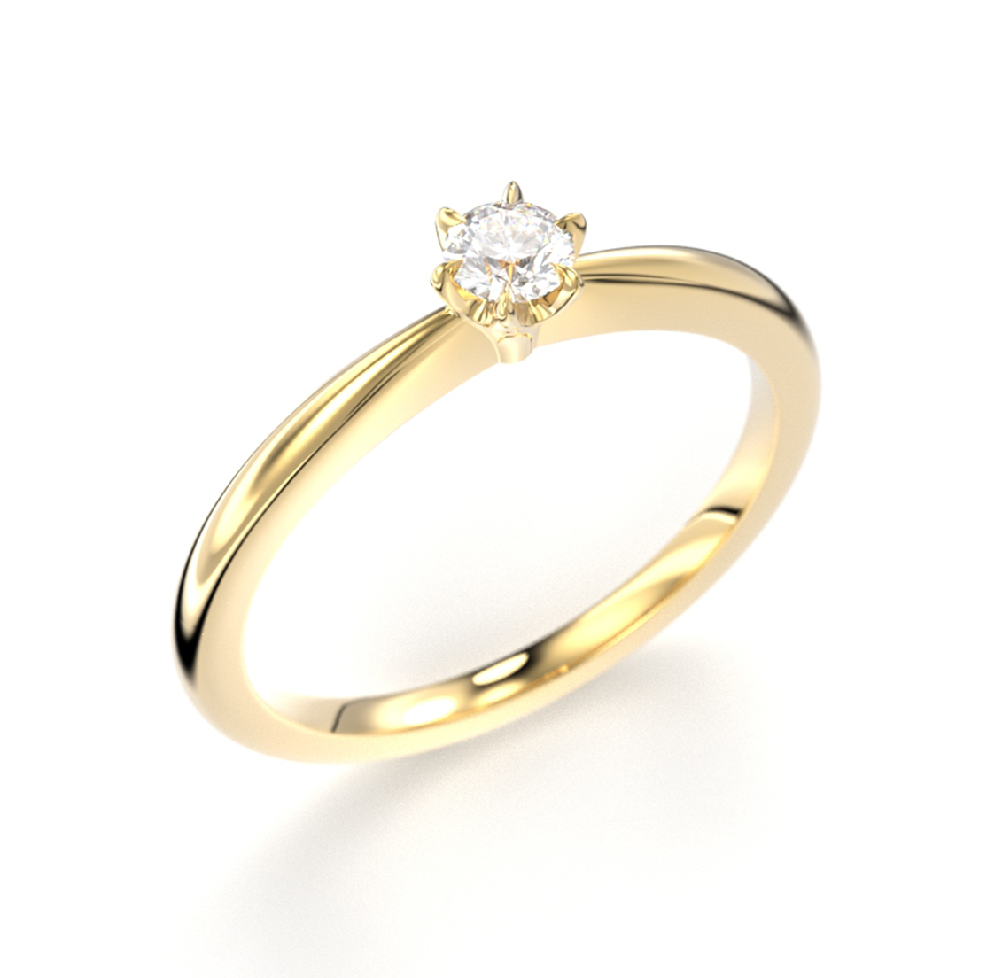 The 0.10 ct Festive Classic 0.10 ct diamond ring is a timelessly elegant and classic choice. The brilliant-cut diamond is allowed to shine on its own, accentuating the ring's understated and elegant design. The ring is made of 14k yellow gold and features a single diamond weighing 0.10 ct.