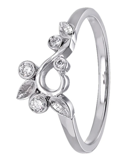 The Festive Eden 601-011-VK diamond ring has a filigree shape inspired by nature, rising up the finger like a beautiful tiara. The setting of the ring is adorned with a series of clear diamonds, and the shape makes it easy to combine with, for example, with an eternity band to create the perfect ensemble. The width of the shank is 1.5 mm and the width of the setting is 7 mm.