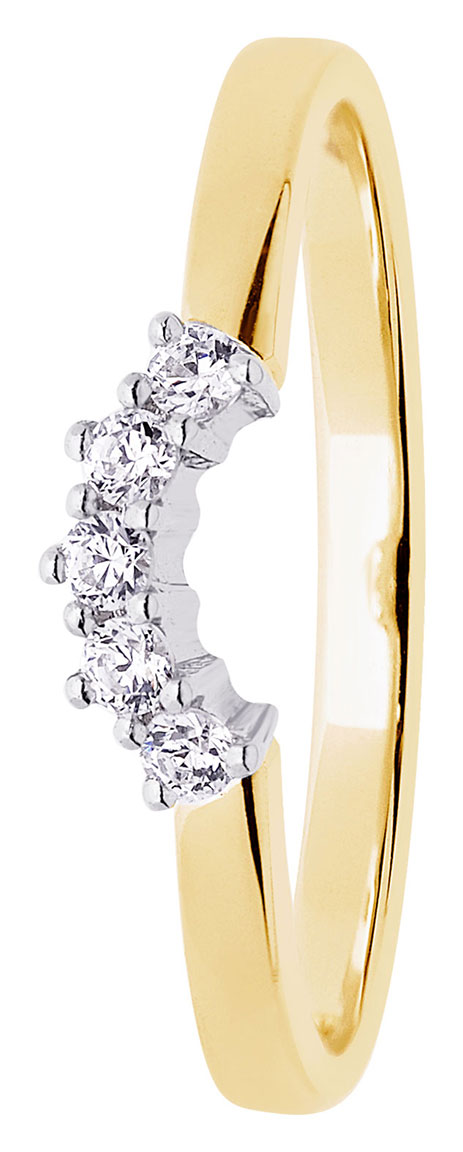 The Fiona ring enhancer ring, from Finnish label Festive, is part of the popular jeweller's decorative vintage collection. The ring enhancer is the perfect wedding ring for someone looking for sparkle and detail. The diamonds in the jewellery are set in a beautiful curved row, accentuating the gracefulness of the 2.2mm wide diamond setting. The clear Wesselton diamonds are 0.02ct in size and cut with a brilliant-cut diamond to maximize brilliance. All five gemstones in the jewellery meet the SI grade on the purity scale.