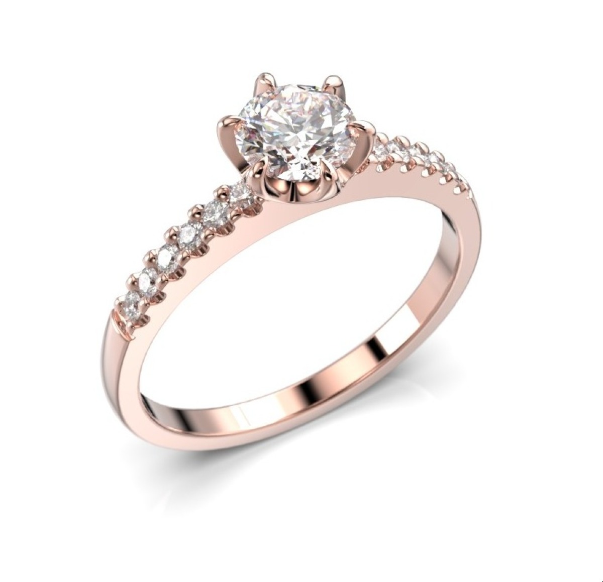 Festive Julianna crown diamond side-stone ring 0,62 ct rose gold 682-062-PK is adorned with 12 0,01 ct diamonds and one 0,50 ct center stone in a beautiful prong setting. The shank is made of rose gold.