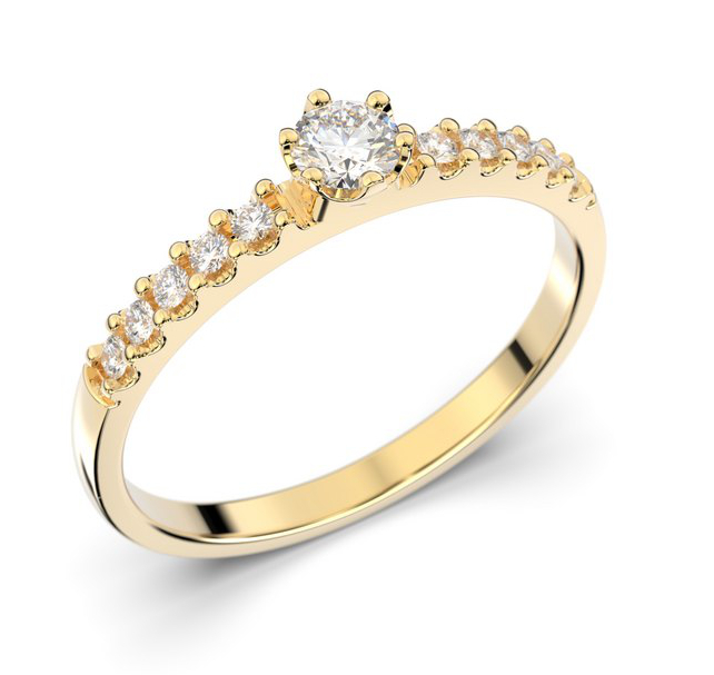 The Festive Julie 608-022-KK ring is made to order in Hämeenlinna, Finland, and is available in either gold, silver or rose gold. Therefore, the rings are only available on exchange. Engraved diamond rings cannot be returned or exchanged. For more information about the Festive Julie 608-022-KK side stone diamond ring, please see the adjacent specifications section.