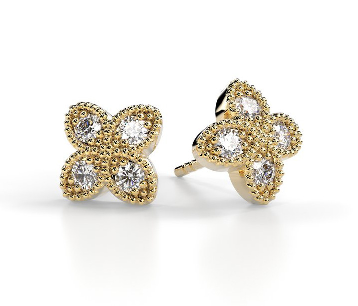 The Festive Lotus 590-024K-KK diamond earrings shine with beautiful yellow gold along with bright 0.03 carat wesselton diamonds. The edge is adorned with a decorative edge, giving the Lotus earrings a unique and timeless look. The diameter of the earring is 9 mm.