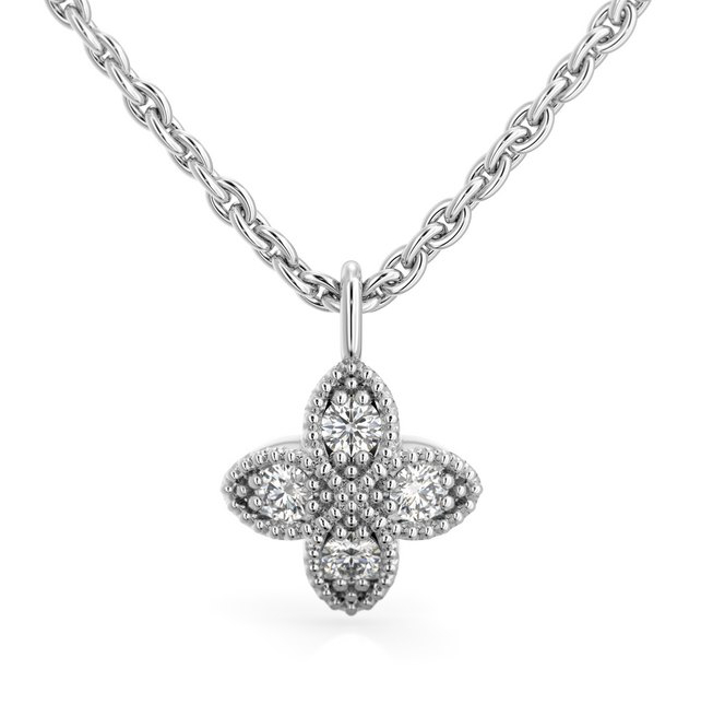 The pendant is available in either 14 or 18 karat white gold, with yellow and rose gold versions and matching earrings also available. The pendant chain is sold separately.