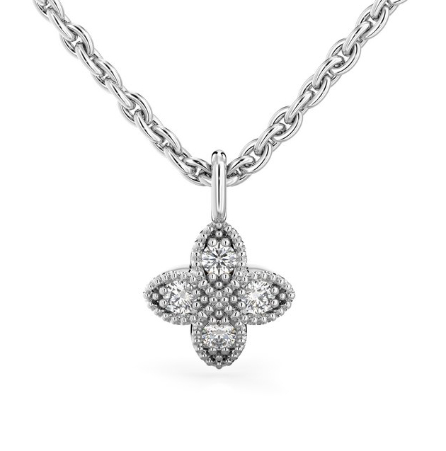 The pendant is available in either 14 or 18 karat white gold, with white and rose gold versions and matching earrings also available. The pendant chain is sold separately.
