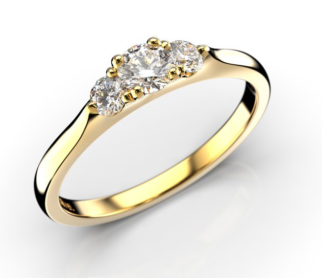 Festive Megan 571-034-KK is a classically beautiful trilogy diamond ring with a slim, comfortable frame and a beautiful setting of three brilliant-cut diamonds. The ring measures 1.6 mm wide, with a carat count of 0.20 for the center diamond and 0.07 for the side stones.