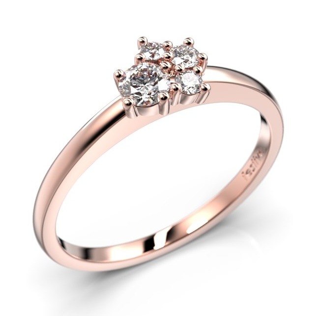 The Festive Nadja Bloom cluster rose gold diamond ring 691-017-PK glistens with a mix of diamonds 0,10 + 0,03 + 2 x 0,02 ct. The diamonds are cut with a traditional round cut, which enhances the brightness and brilliance of the diamonds. The width of the shank is 1,5 mm, and the width of the setting is 5,6 mm.