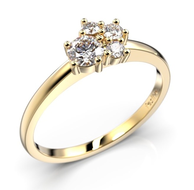 The Festive Nadja Bloom cluster yellow gold diamond ring 688-027-KK glistens with a mix of diamonds 0,20 + 0,03 + 2 x 0,02 ct. The diamonds are cut with a traditional round cut, which enhances the brightness and brilliance of the diamonds. The width of the shank is 1,8 mm, and the width of the setting is 6,5 mm.
