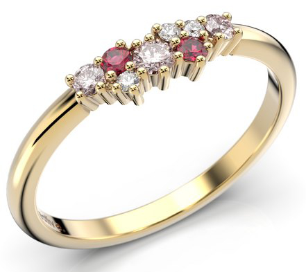 The Finnish-made Festive Nadja Pink 650-018P-KK diamond ring features beautiful diamonds, rubies and tourmalines shining like flowers in a field. The cluster ring is stunning on its own, and is also easy to combine with other rings. The gemstones carefully added to the surface of the ring are cut with a traditional brilliant cut to enhance the brilliance and shine of the diamonds and gemstones (diamonds: 3 x 0.01 ct, pink rubies: 0.05 + 2 x 0.02 ct, tourmalines: 2 x 0.03 ct2 x 0.03 ct).