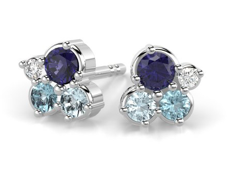 Festive Nelly Blue 629-024B-VK beautiful blue-toned jewel earrings are adorned with diamonds (2 x 0.01 ct), blue sapphires (2 x 0.05 ct) and topaz (4 x 0.03 ct). The stones are beautifully grouped in a slightly uneven row on a 5.5 mm wide frame in a way that makes the stones to cluster against each other, creating a very unique ensemble. Combine with the Nelly pendant to create a unique ensemble.