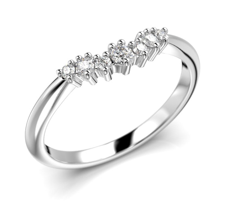 The Festive Nelly Side diamond ring 698-011-VK is set with seven Wesselton SI1 diamonds, (4x0.01+2x0.02+0.03) or, if you prefer, seven Top Wesselton VS1 lab diamonds, weighing a total of 0.11 ct. The eternity ring is beautiful on its own, or can be combined with the Festive Nelly ring. The white gold diamond ring is made in your choice of 14 or 18 karat gold. The width of the ring is 2 mm.