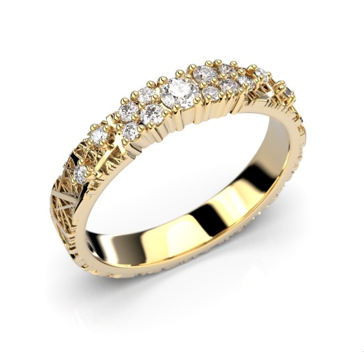 The Festive Routa Rakka Kaita diamond ring is in yellow gold and is decorated with a pattern inspired by granite stone and brilliant-cut diamonds 0,07+2x0,02+2x0,015+9x0,01 (Total. 0,23 ct).