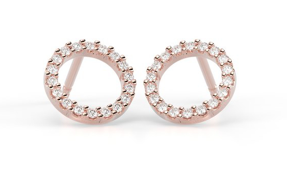 Festive Saturnus 621-018K-PK diamond earrings take the wearer into space and the rings of Saturn. The 18 clear 0.005 carat Wesselton diamonds shine like stars in space. The diameter of the earring is 8.5 mm.