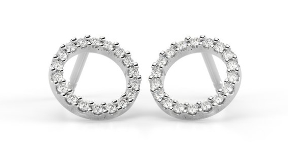 Festive Saturnus 621-018K-VK diamond earrings take the wearer into space and the rings of Saturn. The 18 clear 0.005 carat Wesselton diamonds shine like stars in space. The diameter of the earring is 8.5 mm.
