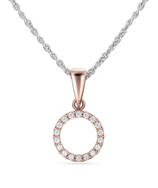The Festive Saturnus 620-009R-PK diamond pendant takes the wearer to space and the rings of Saturn. The pendant's 18 clear 0.005 carat Wesselton diamonds shine like stars in space. The pendant measures 14 x 8.5 mm.