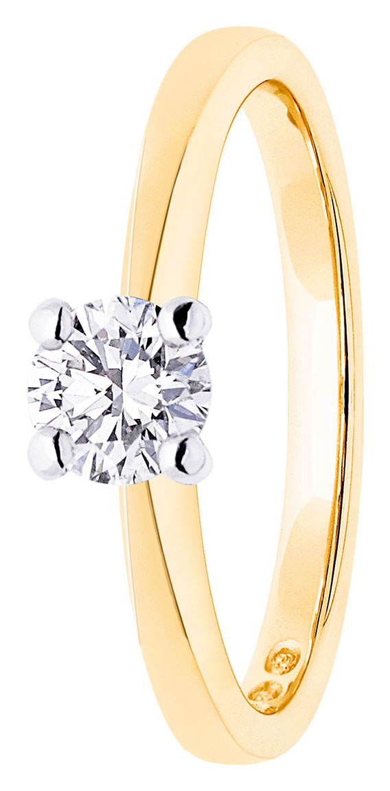 The size of the stone is further accentuated by the white gold used in its prong setting.The body is set in a warm yellow gold, with a choice of either 14 karat or 18 karat carats. The width of the piece is 2.2mm.