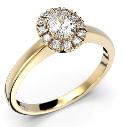 The Finnish-made Festive Veronica 642-042-KK halo diamond ring features an elegant and timeless oval-shaped 0.30-carat larger stone, surrounded by 12 0.01-carat diamonds. The halo setting is a classically beautiful and timeless choice, and sits perfectly alongside a row ring. The width of the frame is 1.9 mm.