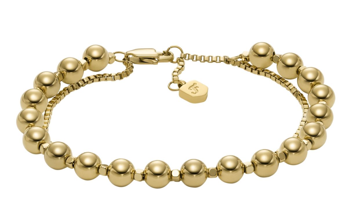 Fossil Jewelry gold-tone bracelet JF04751710 is adorned with gold-tone metal beads. The length of the gold-tone bracelet is adjustable between 165 - 195 mm, and the thickness of the beads is 6 mm. Designed by the American brand Fossil, the jewelry is delivered to your home in the manufacturer's original packaging.