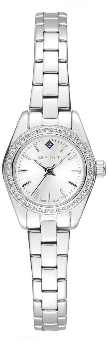 The Gant Fairhaven G194106 women's wristwatch has a slender body and a thin, 10 mm wide silver-colored bracelet made of stainless steel, which is light to wear on the wrist. The case is 22 mm in diameter and 6 mm thick. The watch has a Seiko VX11 quartz movement and durable mineral glass protects the silver-colored dial. The Gant Fairhaven G194106 is water resistant to 30 m / 3 atm, meaning the watch is splash-proof. Gant watches have a two-year warranty and are delivered in the manufacturer's original box.