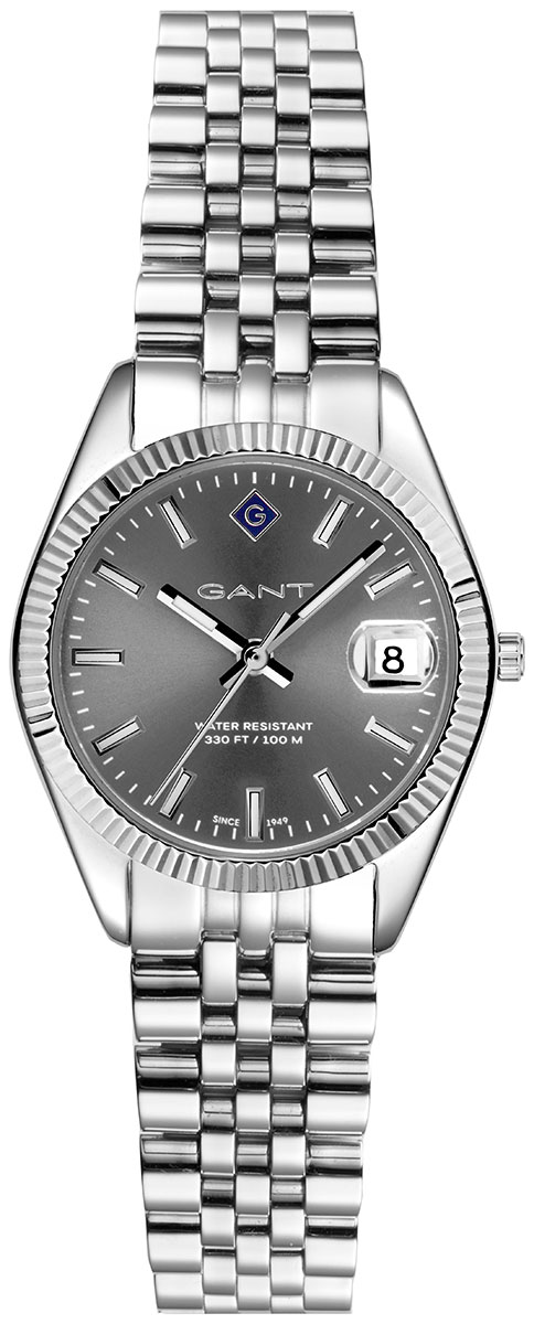The Gant Sussex Mini G181023 women's wristwatch has a beautiful silver-colored design from the case to the bezel and steel bracelet. The dial has a date window with a magnifying glass at three o'clock, which makes it even easier to read the date. The watch has a Miyota GN12 quartz movement, which is protected by a stainless steel case. The case is 28 mm wide and 8 mm thick. The watch is water resistant to 30 m / 3 atm, meaning it is splash-proof. Gant watches have a two-year warranty and are delivered in the manufacturer's original box.