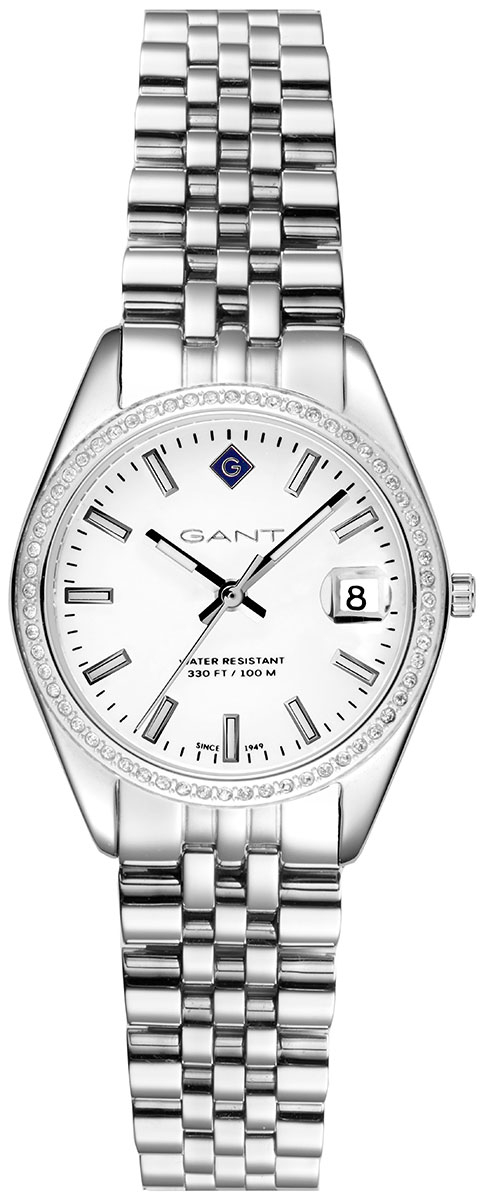 The Gant Sussex Mini G181112 women's wristwatch has a beautiful silver-colored body, from the case to the bezel and the steel bracelet. The dial has a date window with a magnifying glass at three o'clock, which makes it even easier to read the date. The watch has a Miyota GN12 quartz movement, which is protected by a stainless steel case. The case is 28 mm wide and 8 mm thick. The watch is water resistant to 30 m / 3 atm, meaning it is splash-proof. Gant watches have a two-year warranty and are delivered in the manufacturer's original box.