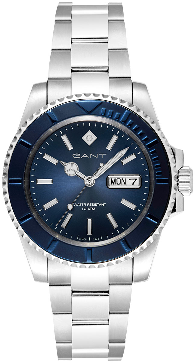 The Gant Watertown G204005 is a striking men's wristwatch with a gray steel case and a Miyota 2305 quartz movement. The watch is 41 mm in diameter and 10 mm thick. A durable mineral glass protects the dark blue dial, which has a date and day of the week display at 3 o'clock, as well as luminescent hands and indexes that help you see the dial in low light. The width of the steel bracelet from the attachment point is 20 mm. The Gant Watertown G204005 is water resistant to 100m / 10atm, which means it is suitable for surface swimming and snorkeling.