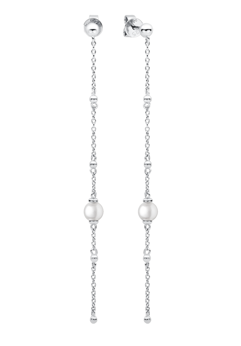 Gaura Pearls chain earrings pearl MSK22235E combine classic with modern. The drop-shaped pearls are paired with a sterling silver chain. The pin clasp makes the earring easy to put on and take off, and it feels light on the earlobe. You can combine the Gaura Pearls with a necklace of your choice or wear the pearl earrings on their own. The pearl size is 4.5-5 mm.