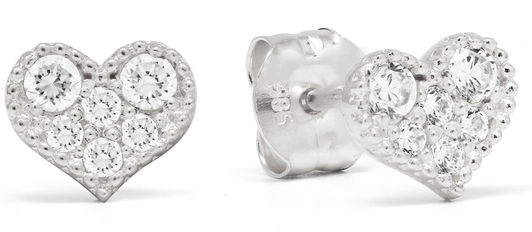 The K-E93245Z-14 karat white gold earrings have a unique design. The classic heart of love is encrusted with brilliant-cut cubic synthetic zirconia and the edge of the jewel has an elegant chrysanthemum border. The earrings are 5.7 mm wide and come in the original manufacturer's packaging.