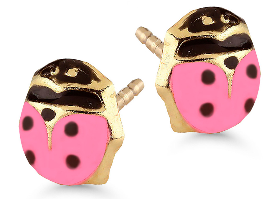 The 1527 pink-14 karat earrings feature a ladybug decorated with pink enamels. This lucky little insect measures 5.3 mm in height and comes in the manufacturer's original packaging.