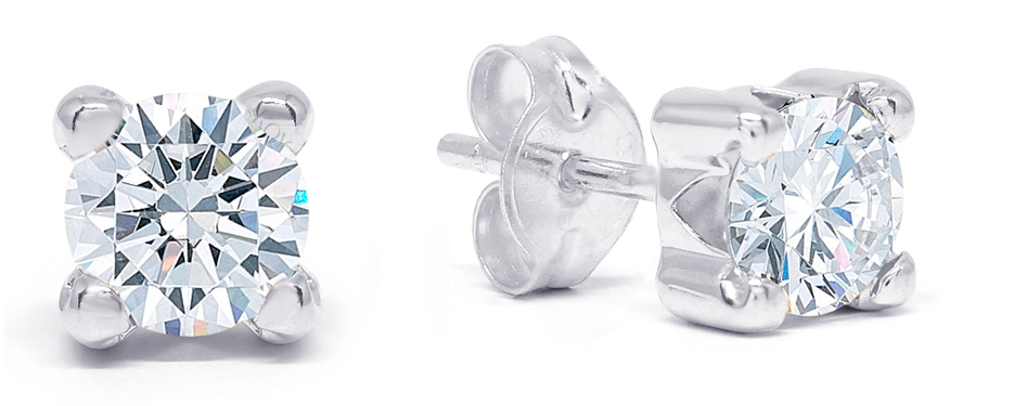 The 141031ZW round stud earrings feature a beautiful brilliant cut cubic synthetic zirconia set in a 14-karat white gold frame. The K-RC50ZW earrings are supplied in the original manufacturer's packaging.