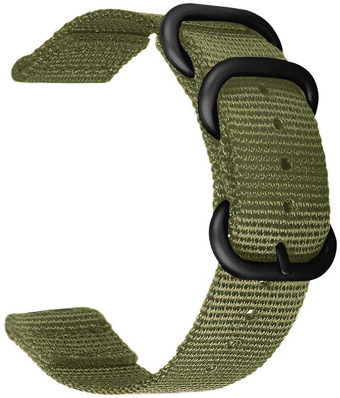 The green nylon watch strap is made of durable nylon, and has black, matte steel loops and buckle. The bracelet fits all watches with a 20/22/24 mm wide attachment point. Please select the correct size from the drop down menu. Please note that spring pins are not included in the package.