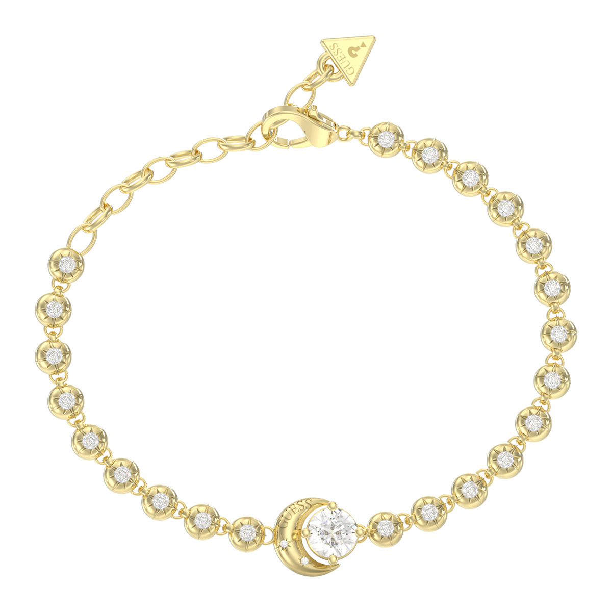 GUESS Aurora JUBB06235JWYGS is a bracelet decorated with many bright zirconias, which combines elegant design and trendy design, making it a perfect accessory for both everyday life and celebrations. The main part of the jewelry has a detailed crescent moon clasp that embraces a large zirconia gemstone. The GUESS Aurora bracelet is made of gold-plated stainless steel, which brings a touch of glamour to your wrist wherever you go. The chain has an easy-to-use parrot clasp. The moon decoration size is 10 mm. The chain length is 14.6 - 18.4 cm.