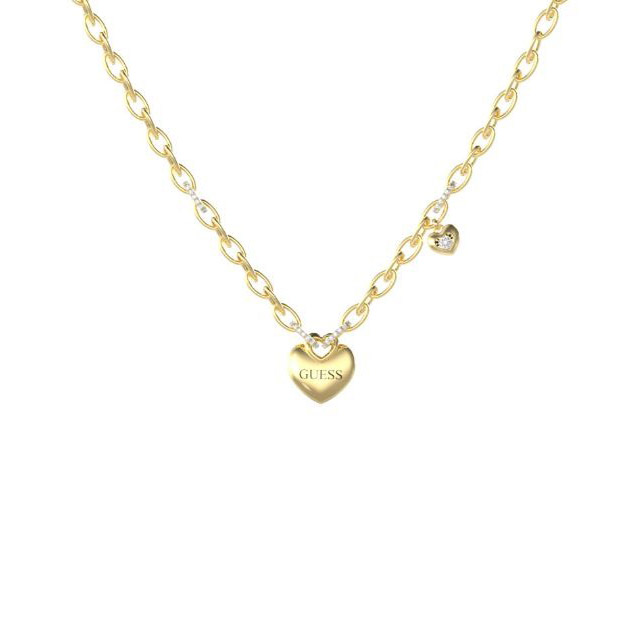 The gold-tone GUESS Crazy in love heart necklace JUBN05216JWYGT/U is finished with a beautiful heart pendant and one small crystal. This timeless heart jewellery is made of stainless steel, and measures 53.3 mm in length. GUESS necklaces come in the manufacturer's beautiful box.