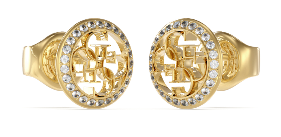 These gold-colored Guess JUBE02136JWYGT/U earrings are a luxurious and striking accessory, embellished with the Guess four letter g logo and synthetic zirconia. Size: 11 mm. The Guess jewellery comes in the original manufacturer's box.
