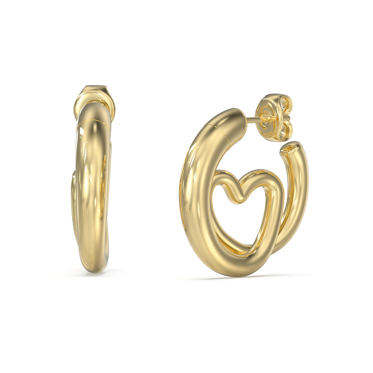 GUESS ICONIQUE earrings charm with their modern design. Made of gold-colored stainless steel, the 14 mm earrings form a stylized heart pattern that stands out with its soft lines. Pin fastening guarantees safe and comfortable use.