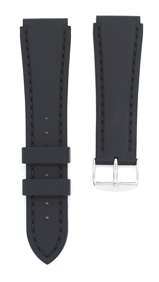 The Hirsch Belize watch strap 402 68 8 50 is made of black synthetic rubber and has black stitching. The watch strap is waterproof. The watch strap is available in 20 mm, 22 mm and 24 mm widths. The width is measured at the widest end of the watch strap where it is attached to the watch case. The total length of the synthetic rubber parts of the watch strap is 19,5 cm. Hirsch watch straps are guaranteed for 1 year, covering manufacturing and material defects.